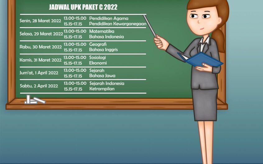 Berdasar POS Ujian Pendidikan Kesetaraan (UPK) tentang pelaksanaan UPK Paket C Tahun Pelajaran 2021/2022. Pelaksanaan UPK di PKBM Hati Mulya Kecamatan Blado Kabupaten Batang akan diselenggarakan pada hari Senin sd Sabtu tanggal 28 Maret – 2 April 2022 di Gedung PKBM Hati Mulya.